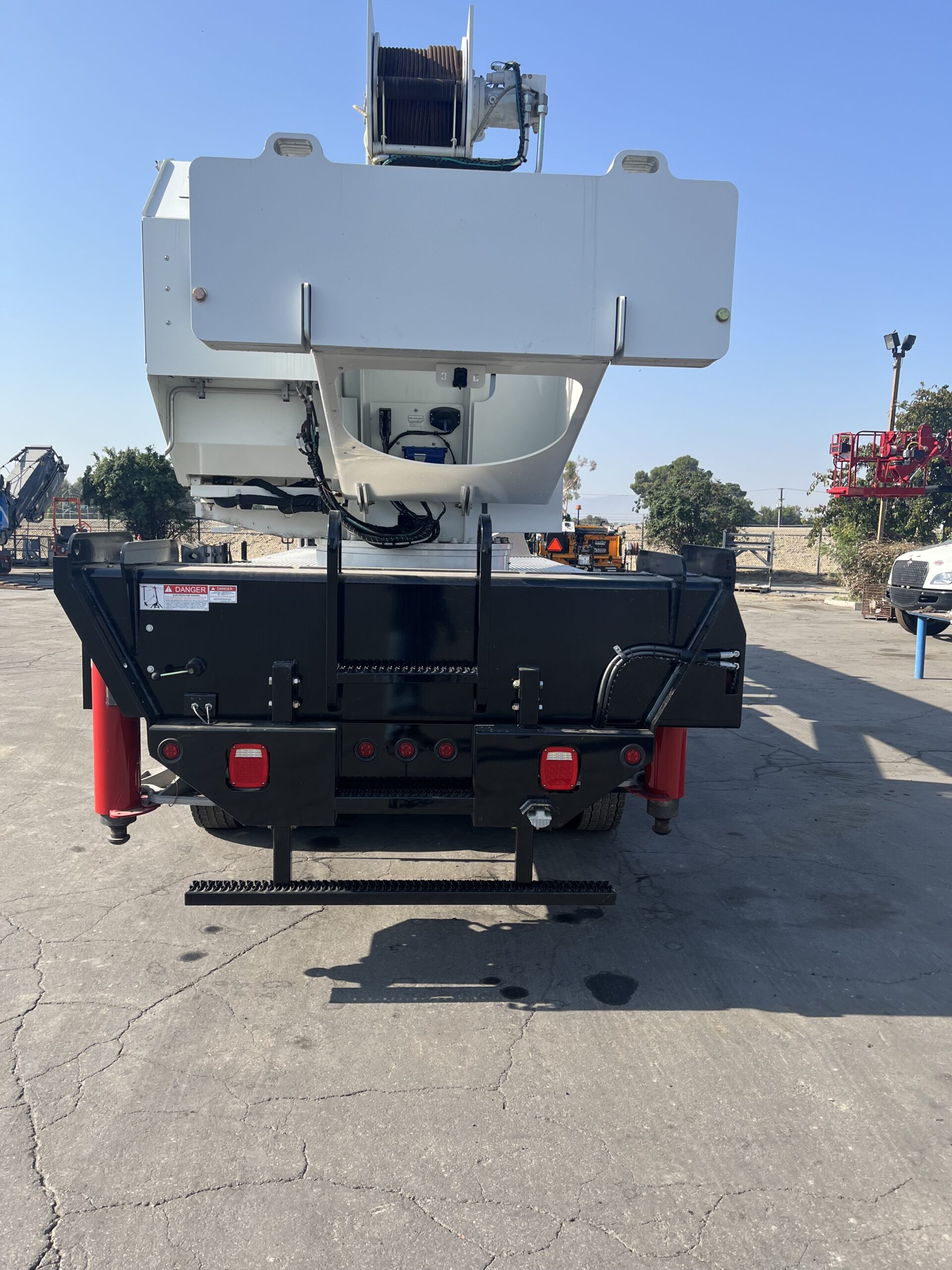 Two sets of “Out-and-Down” type outriggers located at front with 21’2″ center to center span and rear with 26’2″ center to center span and equipped with removable ball socket aluminum pads.